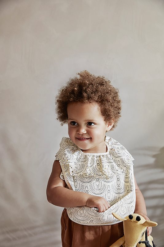 Elodie Details haklapp är tillverkad i 100% Oeko-Tex certifierad, PVC-fri polyester som ger en bekväm men samtidigt funktionell haklapp. Torka eller skölj av efter användningen så är den ren igen. Modellen täcker även axlarna, och kardborrefästet ger snabb av- och påtagning. Men viktigast av allt - du kan vara kladdig och cool på samma gång.