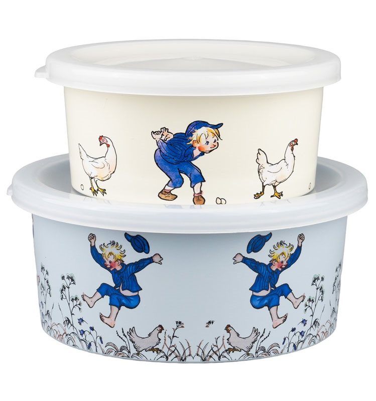 2-pack snackboxar från Rätt Start med fint motiv av Emil i Lönneberga. Den lilla lådan rymmer 250 ml och den stora rymmer 450 ml. Går att diska i maskin på högst 50 grader.