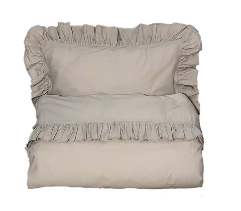 Påslakanset i 100% bomull från Mini Dreams med fin volang som passar till spjälsäng.Material: 100 % öko-tex certifierad bomull Mått: påslakan 100 x 130 cm, örngott 38 x 55 cmSkötselråd: 60 grader