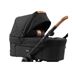 Liggdelen är ventilerad vid huvudändan och har en mjuk och tjock madrass för bebisen att ligga på. Liggdelslock med en extra kant för att skydda mot vind.