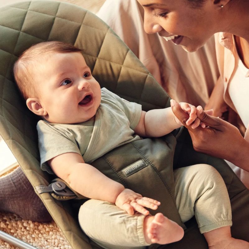 En babysitter och barnstol i samma produkt från Babybjörn som är designad med mjukt kviltat bomullstyg och runda former som omsluter ditt barn i en mysig ombonad där de kommer känna sig trygga och bekväma. Babysittern omvandlar barnets egna rörelser till en rogivande och underhållande gungning, helt utan batterier och sladd! Rörelserna främjer även utvecklingen av barnets balans och motorik när de använder babysittern och oroa dig inte: den är ergonomiskt anpassad för att erbjuda ditt barn det bästa stödet för huvud, nacke och rygg. Babysitter Balance Bliss har fyra användningslägen: leka, vila, sova och barnstol: