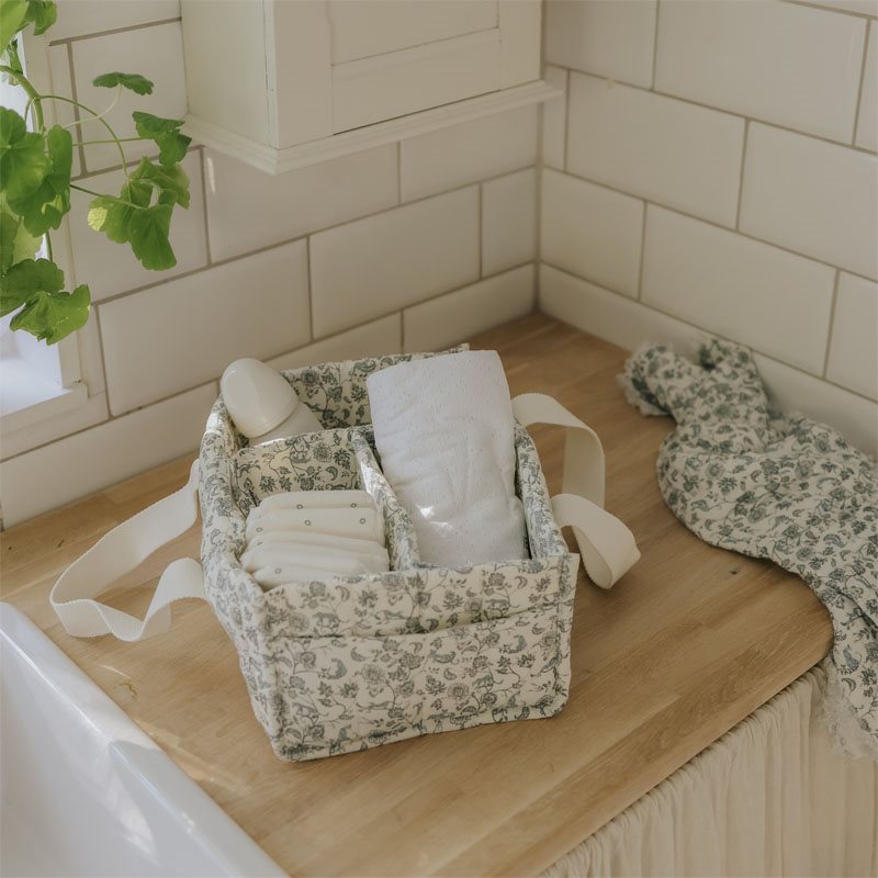 Elodies Diaper Caddy är en smart väska som försäkrar att du alltid är redo för stöket som kan uppstå i vardagslivet som förälder. Med tre innerfickor med massor av utrymme och ett ytterfack håller du lätt ordning och reda på alla dina nodvändigheter. Blöjor och våtservetter? Check! Flaskor, nappar och ditt barns favoritleksak? Check! Diaper Caddy gör det enkelt och smidigt att komma åt blöjan när det är dags för ett blöjbyte så du spenderar mindre tid på att leta och mer tid åt att släcka alla små bränder som uppstår omkring dig som mamma eller pappa. Den är lätt, portabel och kommer givetvis i Elodies populära motiv och färger, vilket gör den perfekt både utflykter och i hemmet. Diaper Caddy är designad för att kunna stå på skötbordet på egen hand och dess handtag i bomull gör den smidig att flytta på och bära med. Självklart är Diaper Caddy också maskintvättbar, så du kan känna dig trygg att din väska är lätt att hålla ren och fräsch, även när små olyckor uppstår!