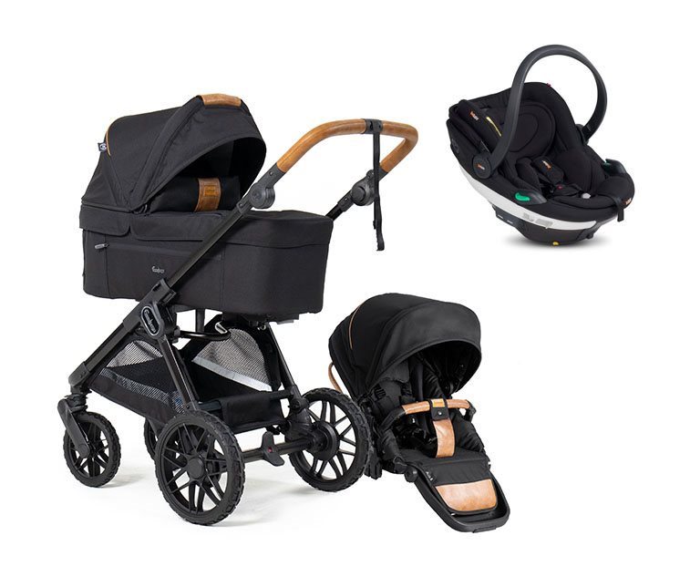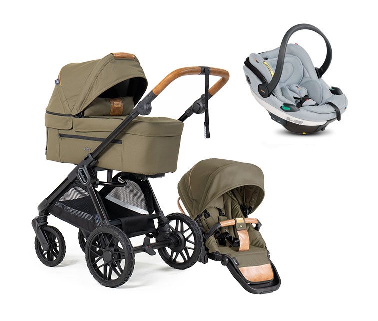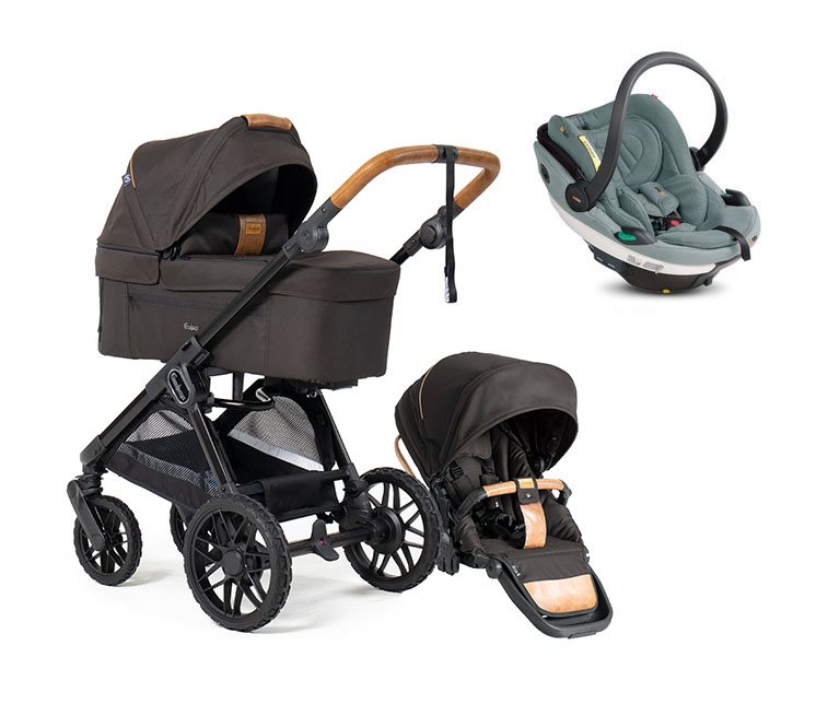 I takt med att barnet växer höjs nackstödet upp och när barnet vuxit ur och sitter trångt i det medföljande spädbarnsinlägget så plockas detta ur för att ge mer plats. Sufflett som kan fällas fram för att skydda mot solen samtidigt som det går att fälla upp ena sidan så man kan se barnet. För att rotera babyskyddet och justera bärhandtaget krävs endast ett enhandsgrepp.