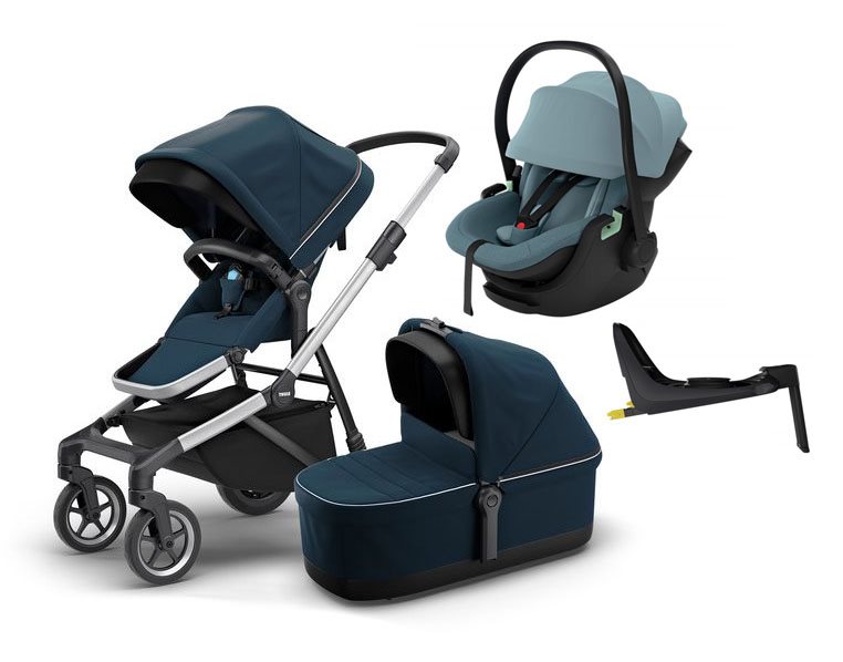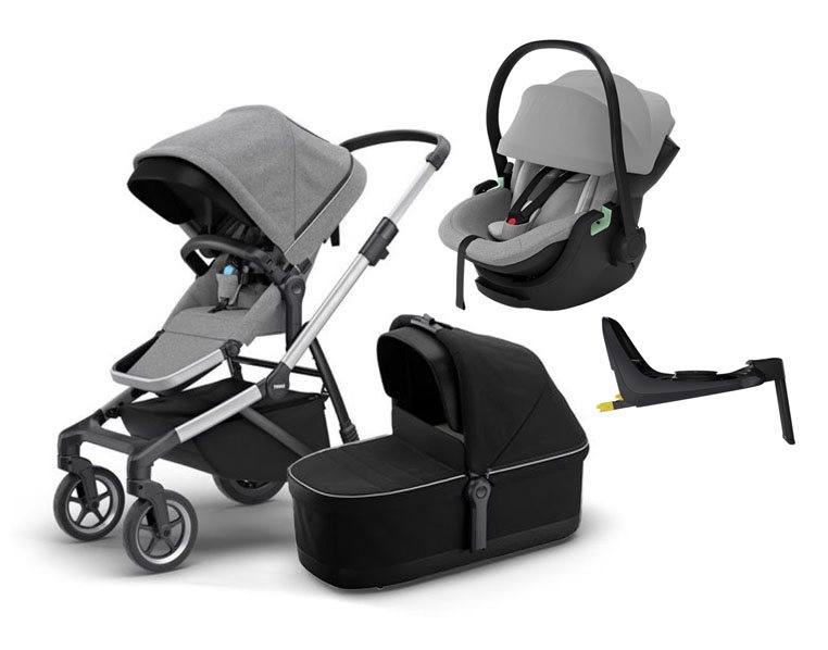 Här får du Thule Sleek som en duovagn, samt Thule Maple babyskydd, Thule isofixbas Alfi och tillhörande adapter. Välj fritt vilka färger du önskar!