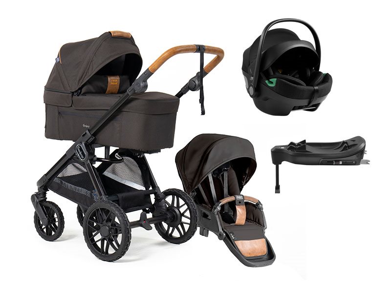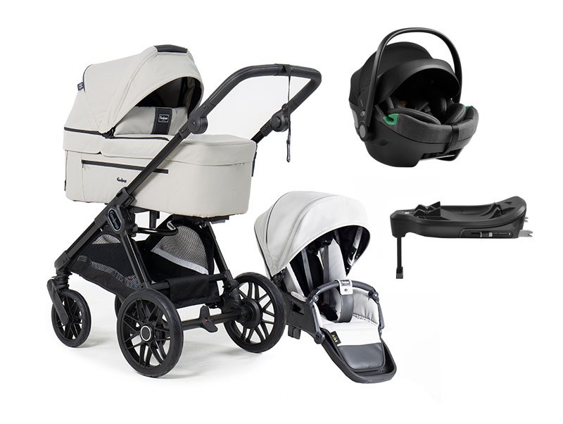 Här får du Emmaljunga Sento Pro duovagn Flat+, samt Axkid GoKid babyskydd, matchande isofixbas och tillhörande adapter. Välj fritt vilka färger du önskar.