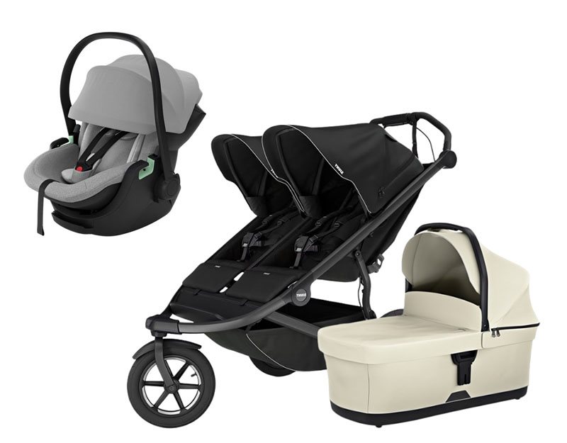 Här får du nya uppdaterade Thule Urban Glide 3 double som duovagn med 1x liggdel, samt 1x Thule Maple babyskydd och tillhörande adaptrar. Välj fritt vilka färger du önskar.