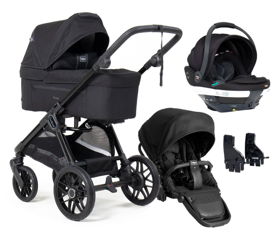 Här får du Emmaljunga Sento Pro Ergo duovagn med ergonomisk sittdel samt babyskyddet Go Beyond i samarbete mellan Emmaljunga och BeSafe som färgmatchar barnvagnen + adapter. Välj fritt vilka färger du önskar.