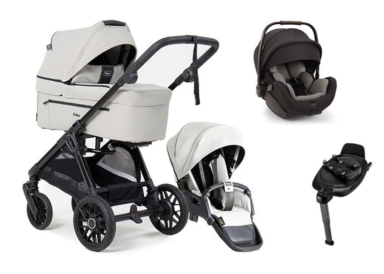 Här får du Emmaljunga Sento som duovagn med chassi, klassisk sittdel och liggdel, samt Nuna Arra Flex babyskydd med tillhörande isofixbas och adapter. Välj fritt vilka färger du önskar!