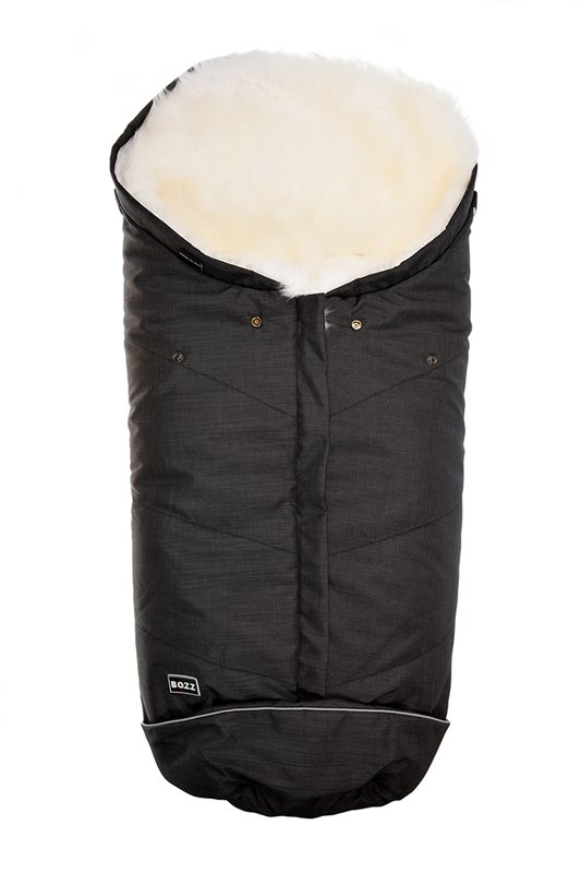 Varm åkpåse klädd i långhårigt lammskinn från BOZZ, för alla typer av barnvagnar. Utsidan i nylon är vind- och vattenavstötande. åkpåsen kan öppnas helt med hjälp av dragkedjan på framsidan och vid fotändan. Antiglidyta på baksidan. Uttag för fempunktsbälte.