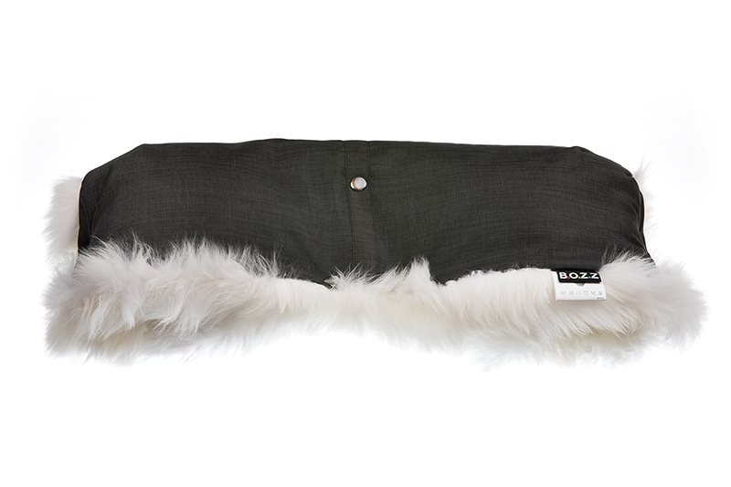 Bozz Handmuff är en värmande accessoar som placeras på barnvagnens handtag. Stoppa in händerna och håll dem varma i det kalla vädret. Insidan är klädd i mjukt och skönt lammskinn och yttersidan är vattenavvisande. Universal modell som passar på nästan alla barnvagnar som finns på marknaden.