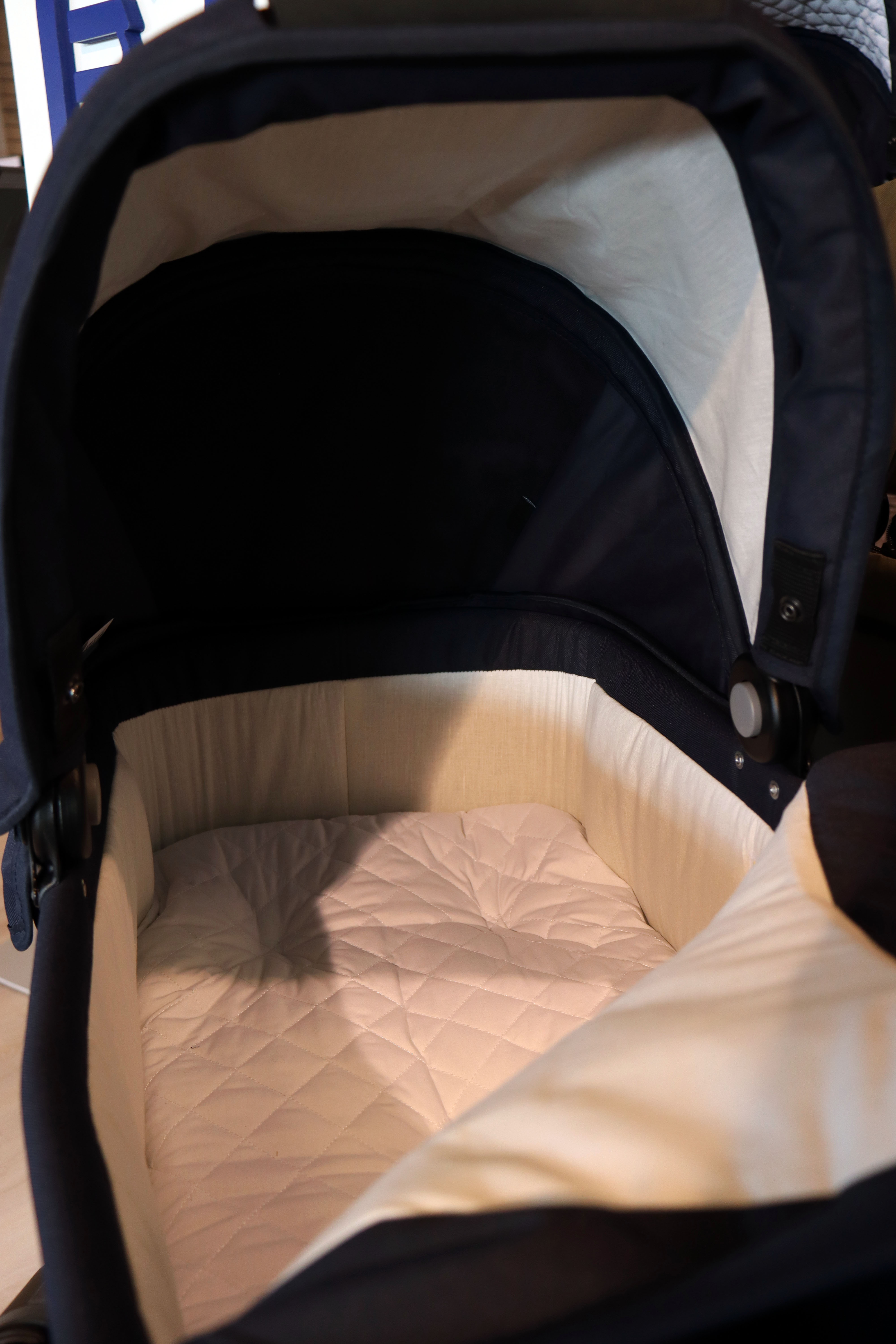 - Snygga detaljer: läderimitation i bärhandtaget & quiltad insida på liggdel