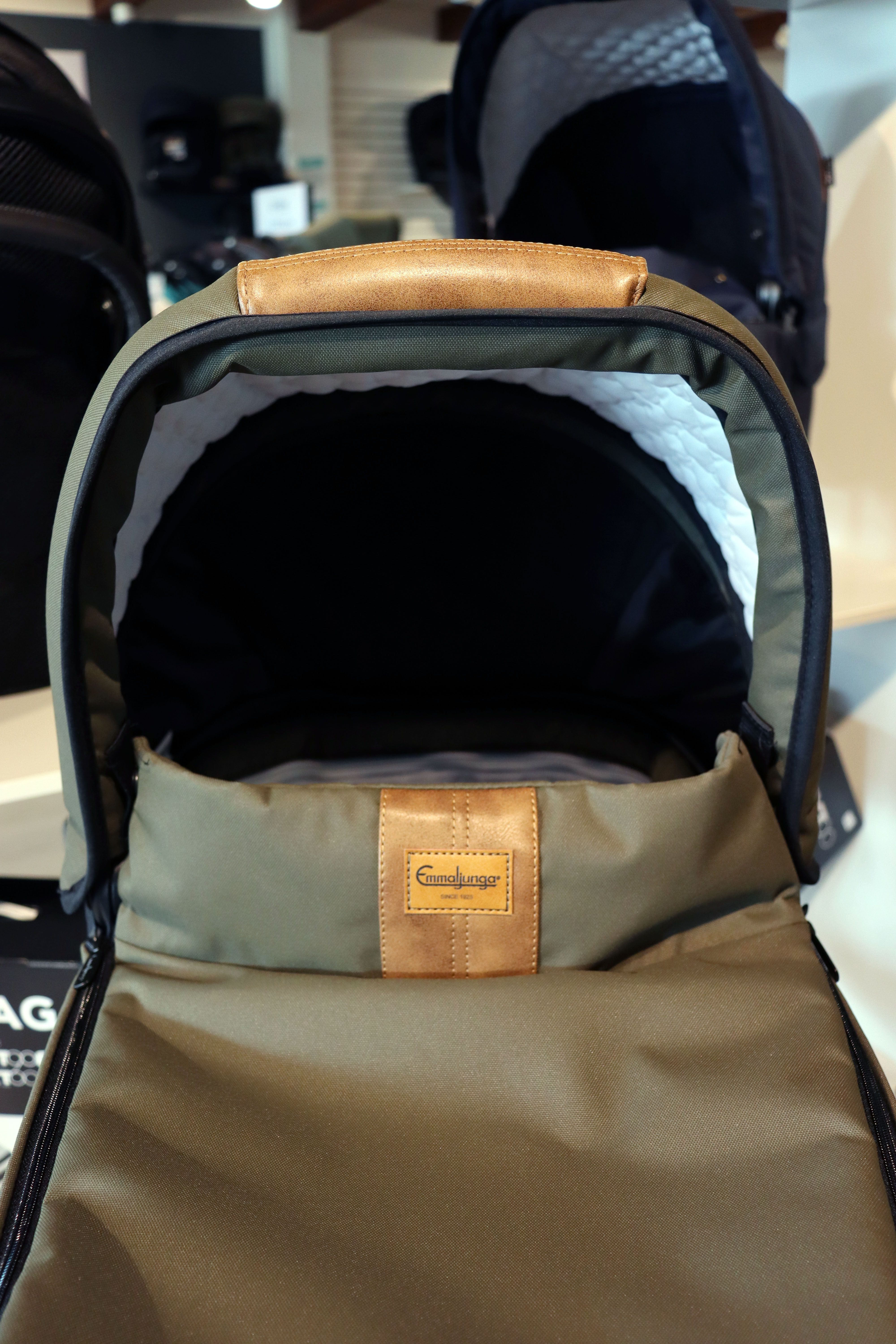 Den enda skillnaden där egentligen finns på sittdelarna är läderdetaljerna på grenbandet och i fotändan samt handtaget bak i ryggen som du justerar lutningen med. Det är lite lättare att torka av och hålla läderimitationen ren efter smutsiga skor, än vad det kanske är med tyget i fotändan på Classic vagnen.
