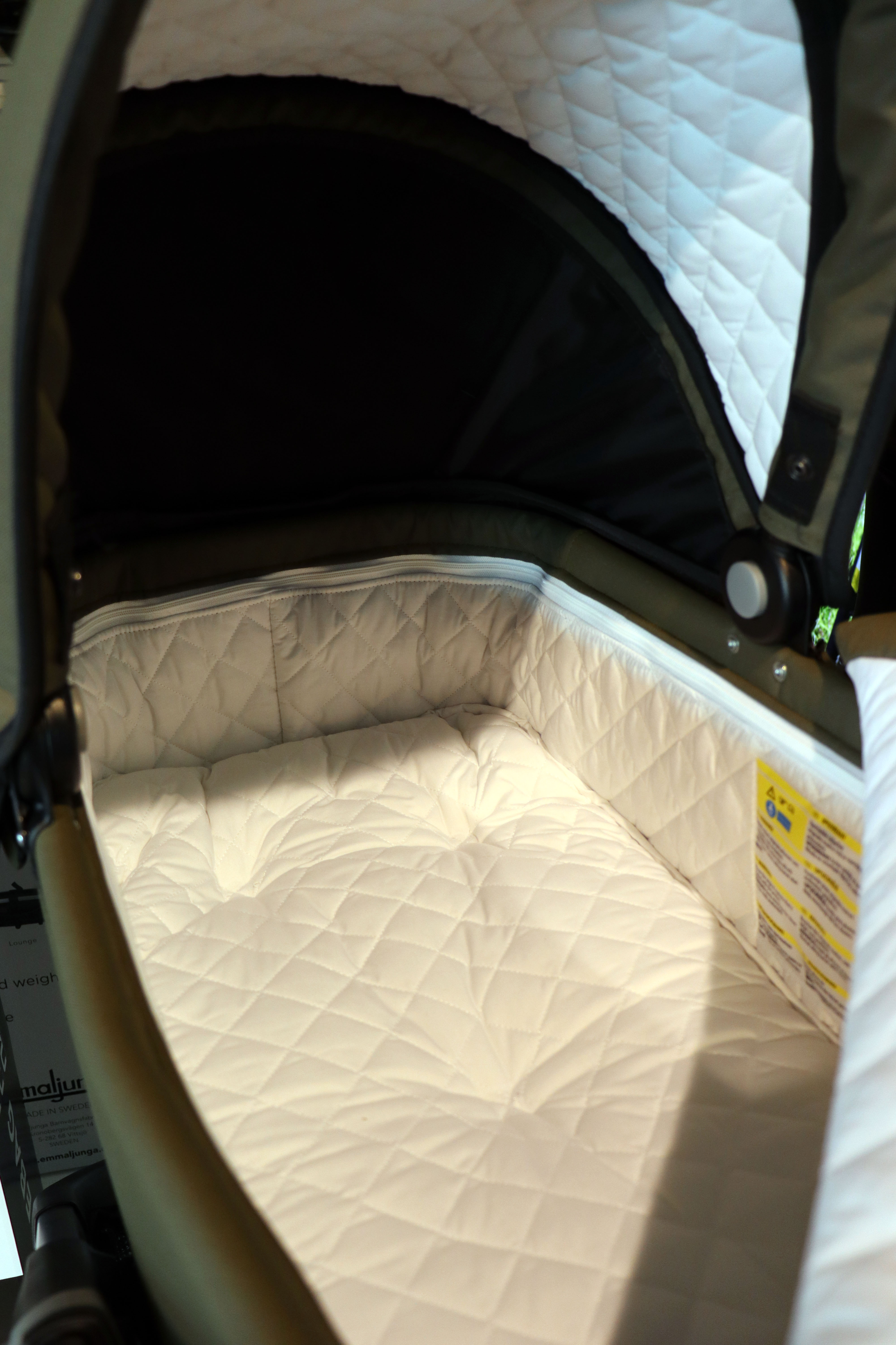 - Dragkedja på liggdelslocket: du öppnar enklare upp sidorna för att smidigt lyfta i/ur barnet